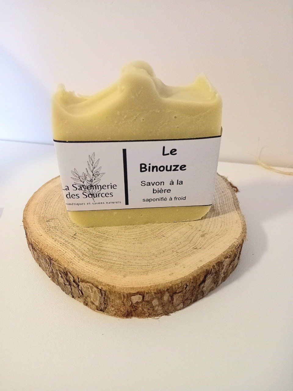 Le Binouze est un savon saponifié à froid surgras à base d'huiles végétales, de beurres, de bière, d'argile blanche.